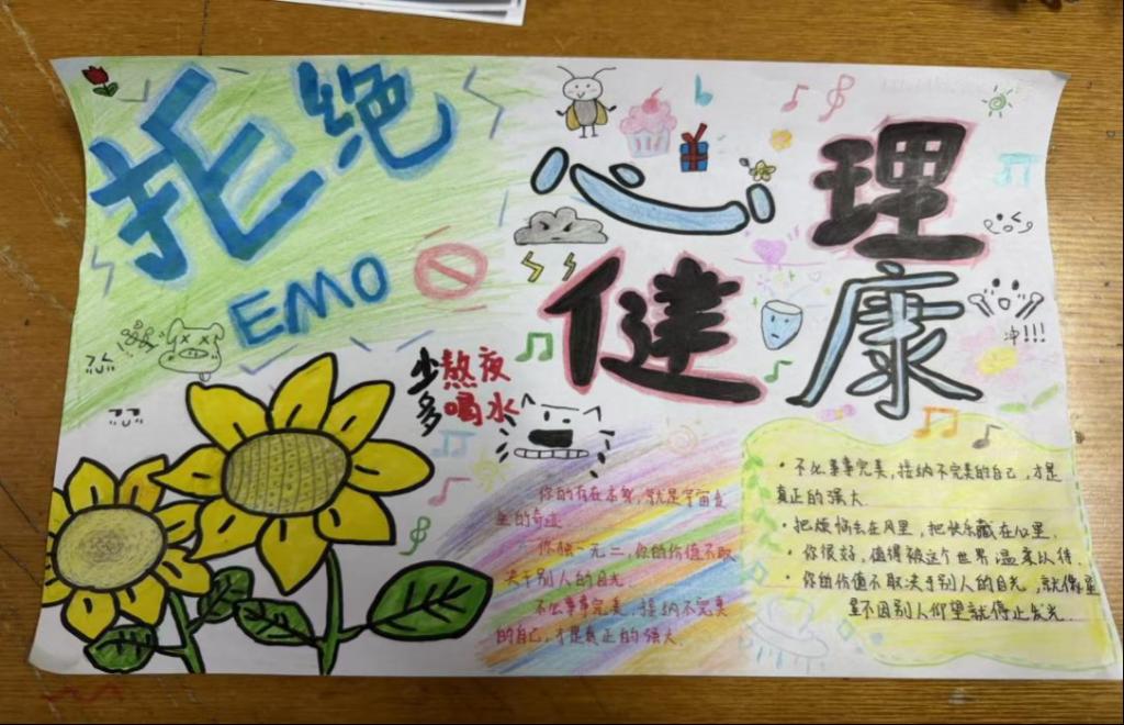 本次活动以“绘心聚力护航成长”为主题,自启动以来,得到了全院员工的热烈响应和积极参与。同学们充分发挥想象力与创造力,将心理健康知识与艺术设计巧妙融合。在一张张手抄报上,色彩明快的插画、温暖治愈的文字、条理清晰的心理小贴士相映成趣,有的聚焦情绪管理小技巧,有的分享人际交往的暖心法则,有的科普心理调适的实用方法,每一份作品都饱含着同学们对心理健康的独到理解,也传递出积极向上的心理正能量。