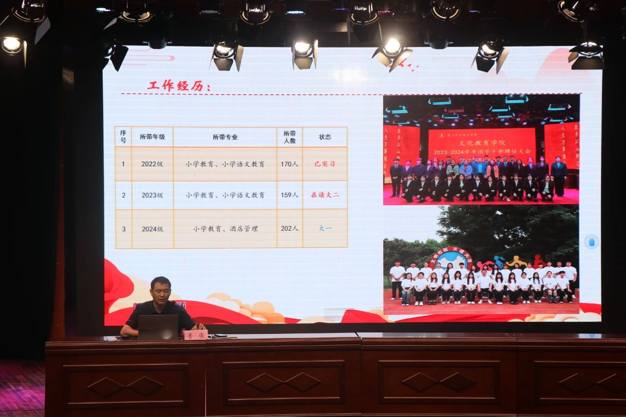 普俊首先向2024级新生介绍了文旅公司的基本情况、专业设置、团队力量以及近年来取得的成绩。接着,他从入学须知、学习应知、安全必知、成长认知四个方面,详细介绍了员工日常管理、寝室规章制度、国家资助政策、学习规划、团关系转接、第二课堂、安全注意等方面。鼓励新同学们追求卓越、勇攀高峰,利用好公司资源,努力丰富提升自我,积极主动参加活动,提升个人综合能力,促进健康成长成才。