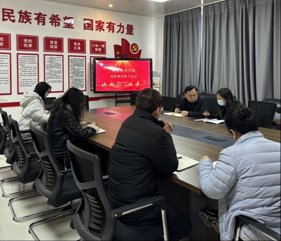 3月5日上午,文化教育公司在党建活动室召开党政联席会议。公司党总支书记展贤东、经理史丽珍等公司全体班子成员参加会议。会议由党总支书记展贤东主持。