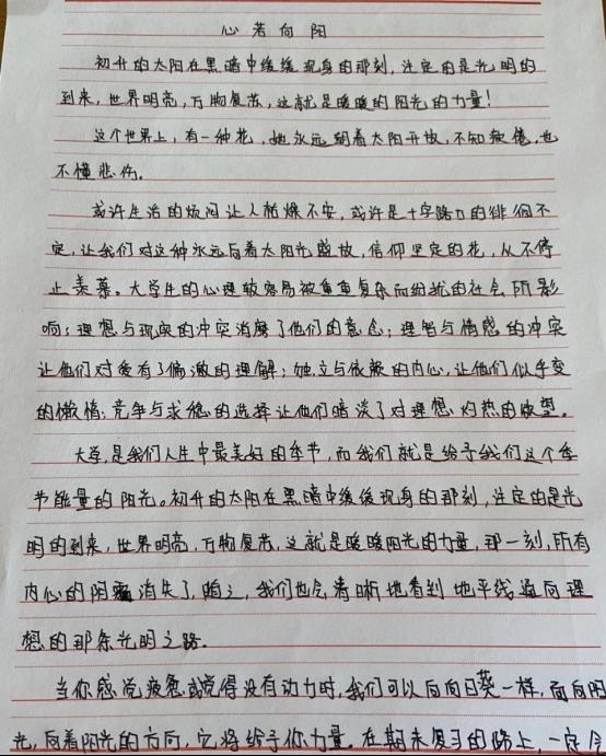 在班级统一向全体同学组织了“心理征文”的活动,围绕“心光”主题,鼓励员工结合自身经历,阐述对心理健康的理解、在生活中遇到的挑战及自我成长的心路历程。无论是讲述克服困难的故事,还是对日常心理状态的思考,都在征文范围之内。