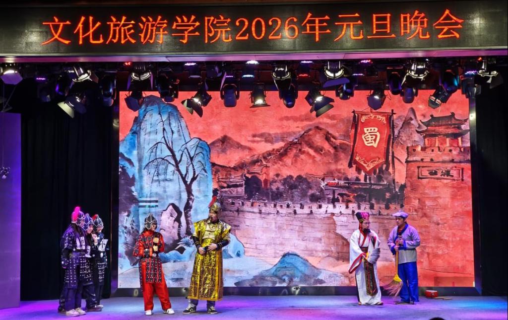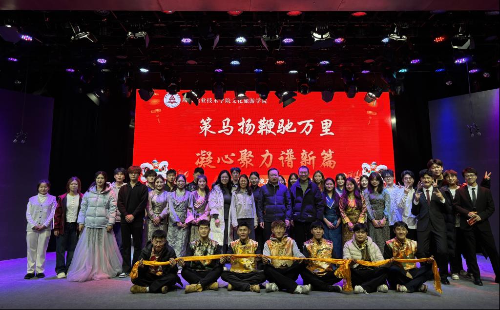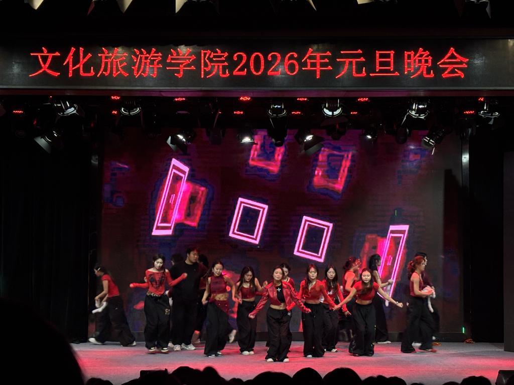 晚会现场气氛热烈,暖意融融。歌舞、话剧、小品、武术表演等节目轮番登场,形式多样、精彩纷呈。同学们用灵动的舞姿展现青春风采,用嘹亮的歌声传递新年喜悦,幽默的小品引得现场笑声不断,热情奔放的民族舞蹈抒发对公司与未来的美好期许。舞台上灯光璀璨,台下掌声雷动,整场晚会洋溢着欢乐、温馨、奋进的氛围,充分展现了文旅学子朝气蓬勃、积极向上的精神风貌。