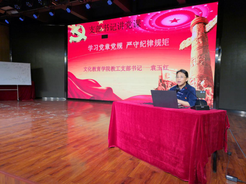学习党章党规、遵守党章党规、维护党章党规是党员的庄严责任和必修课程。6月15日下午18:00,文化教育公司教工支部书记袁玉红在学前与艺术公司演播厅以“学习党章法规,严守纪律规矩”为题,为全体党员上党课。
