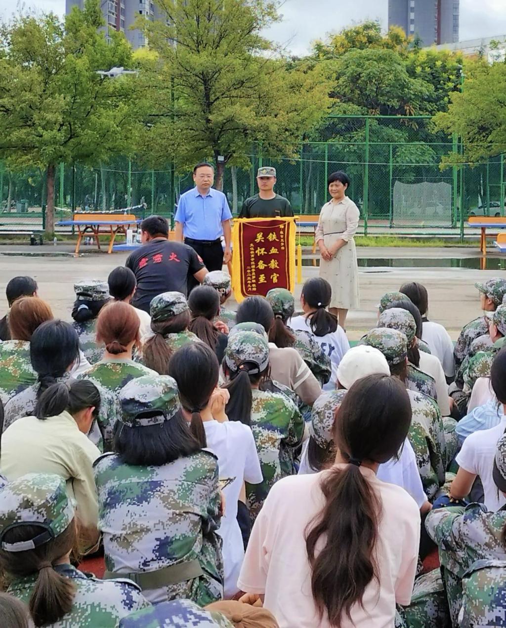 锦旗虽轻,情意深厚。王梦号教官用实际行动守护员工,诠释了“退伍不褪色”的真谛。感谢教官们的辛勤与付出,相信文教新生们定将军训中学到的互帮互助、坚韧不拔的精神延续到今后的学习生活中来,不断成长!