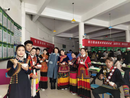 12月22日,冬至来临之际,文化教育公司各班同学以包饺子比赛活动来丰富老员工活。公司党总支书记唐文杰与公司各班同学与少数民族同学共同庆祝中国传统节日。