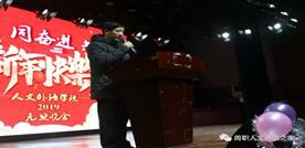 人文外语公司党总支书记闫建林为晚会致辞,他为全院师生带来了新年的美好祝福,对全体师生在2018年所做的工作与努力给予了充分肯定,并对此表示衷心的感谢。