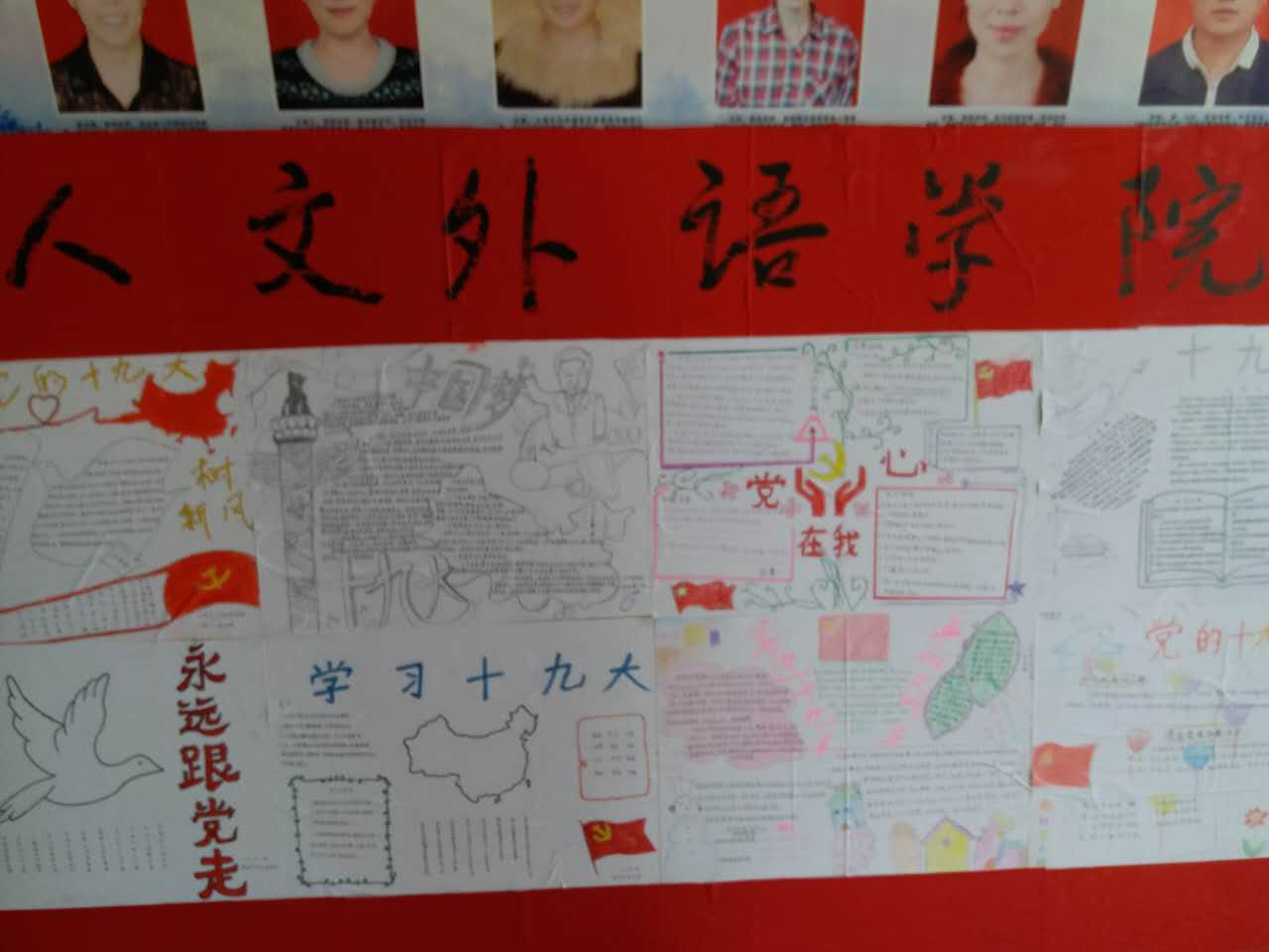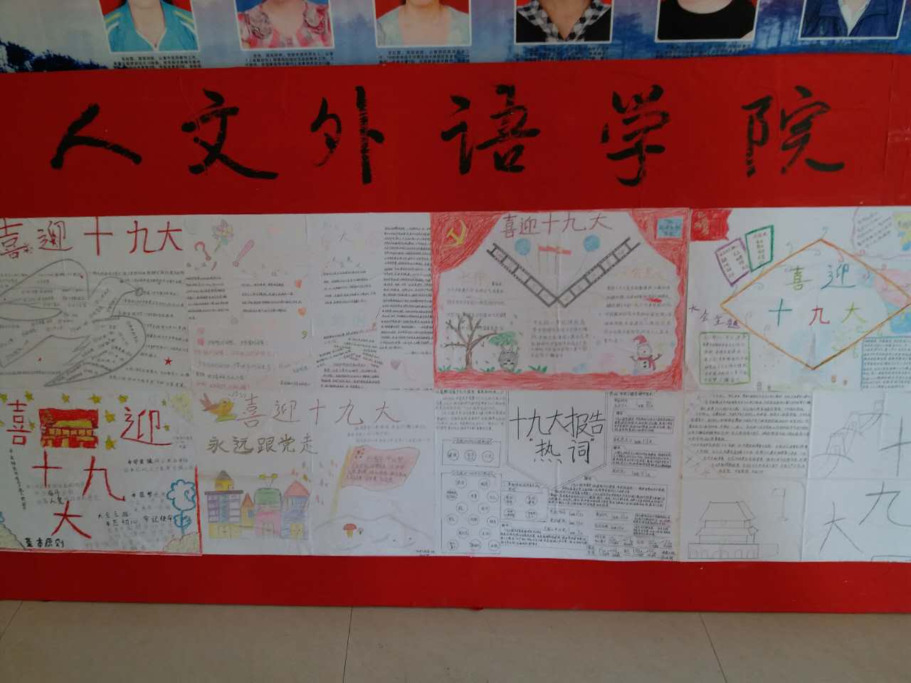 为深入贯彻落实学习党的十九大的精神及内容,号召青年员工坚定不移高举中国特色社会主义伟大旗帜,营造学习氛围,谱写公司发展新篇章,人文外语公司于2017年12月4日—11日开展以“学习党的十九大精神”为主题的手抄报展览活动。