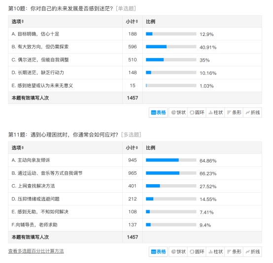 通过此次同学们悉心填写的心理调查问卷,我们成功收集并梳理出了多方面的数据,包括同学们会通过何种方式来缓解压力、认为公司是否有必要开展更多的心理健康教育、是否了解常见的心理疾病、是否存在睡眠障碍以及出现心理问题后该如何应对等相关数据。