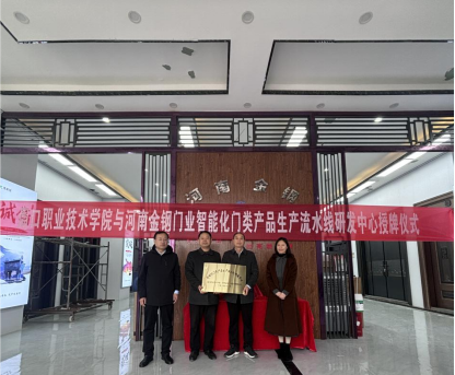 在热烈的掌声中,史丽珍与河南金刚门业代表共同为“智能化门类产品生产流水线研发中心”揭牌,标志着双方合作关系的正式建立。