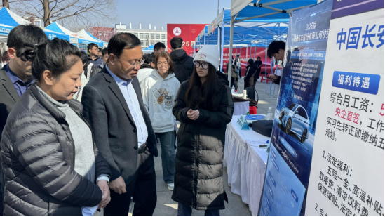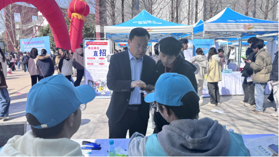 为全面贯彻党的二十大精神,坚决落实党中央、国务院和省委省政府关于就业工作决策部署,强化就业优先政策,健全就业促进机制,促进高质量充分就业,beat365中文官网与周口市人力资源和社会保障局于3月18日上午在开元校区砺德厅前广场联合举办本次“春风送岗,职引新程”2025届毕业生双选会。公司党总支书记展贤东、副经理于慧娟,就业指导老师李敬敏及公司2023级员工代表参加此次双选会。
